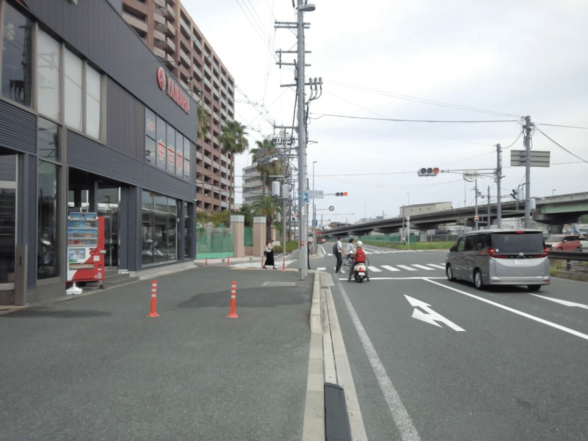 お客様よりわかりづらいとのご指摘がございましたので、写真でご案内いたします。 大阪方面よりご来店のお客様 <<信号を左折 枚方大橋(高槻)方面よりご来店のお客様 >>信号を右折 当店駐車場位置 曲がってすぐのコインパーキングの向かい側の1・8番が当店駐車場になります。 1・8番には「YSP」のロゴが貼ってありますのでお間違いなく